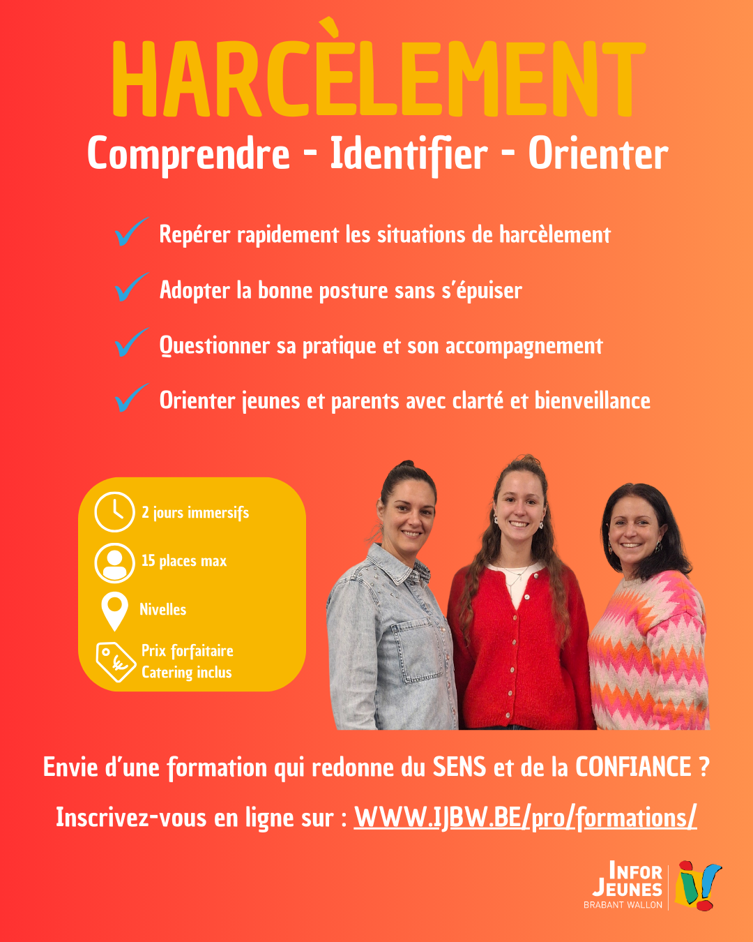 SOLD OUT Une formation sur le Harcèlement à destination des professionnels Comprendre • Identifier • Orienter 🌟 Une formation qui fait du bien… et qui fait la différence Le harcèlement est une réalité complexe, mouvante, parfois déroutante. Pour intervenir avec justesse, il faut plus que des théories : il faut du vécu, du concret,… Lire la suite »Formation Harcèlement – 06/02 et 09/02