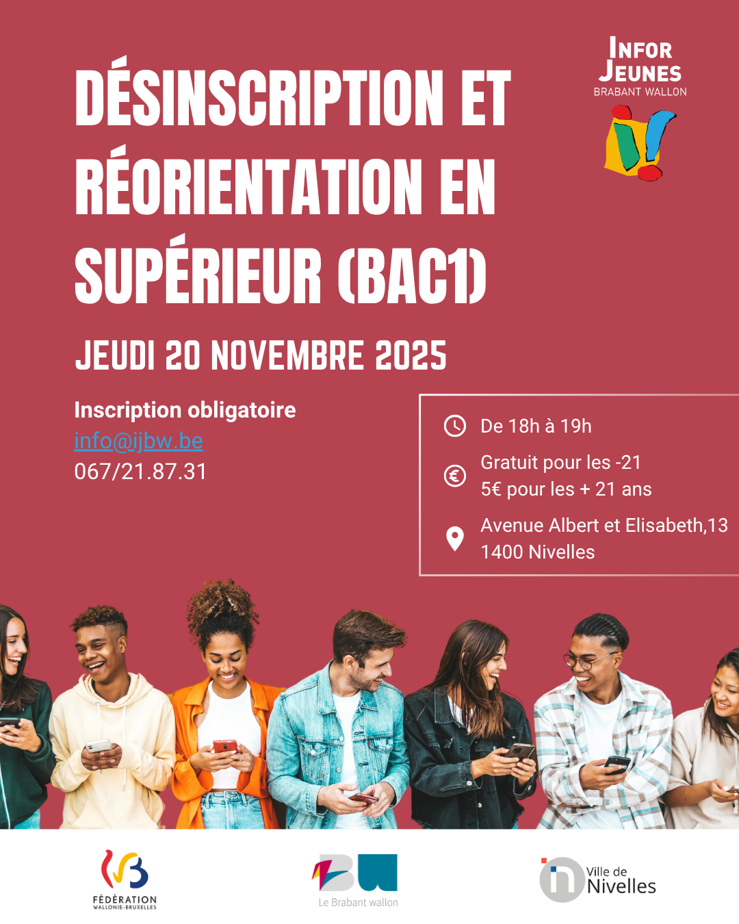 🔄 Tu veux te désinscrire ou te réorienter en supérieur ? Ton choix d'études ne te convient pas ? Tu envisages de changer de cap ? Viens t'informer sur les démarches de désinscription, les possibilités de réorientation, l’impact sur la finançabilité, et bien plus encore 🎓 📅 20 novembre 2025 🕖 18h à 19h 📍… Lire la suite »Séance d’information : Désinscription / Réorientation en supérieur |